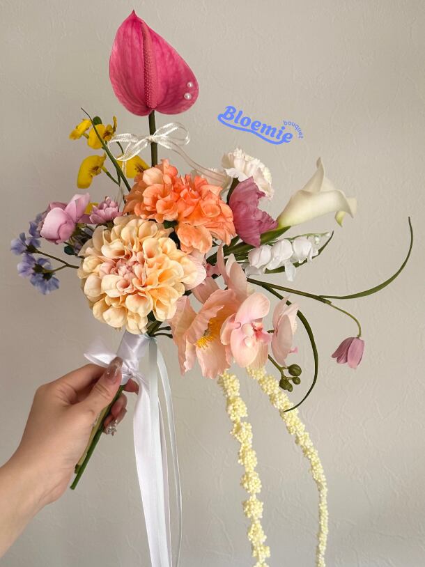アーティフィシャルフラワーブーケ_coral01